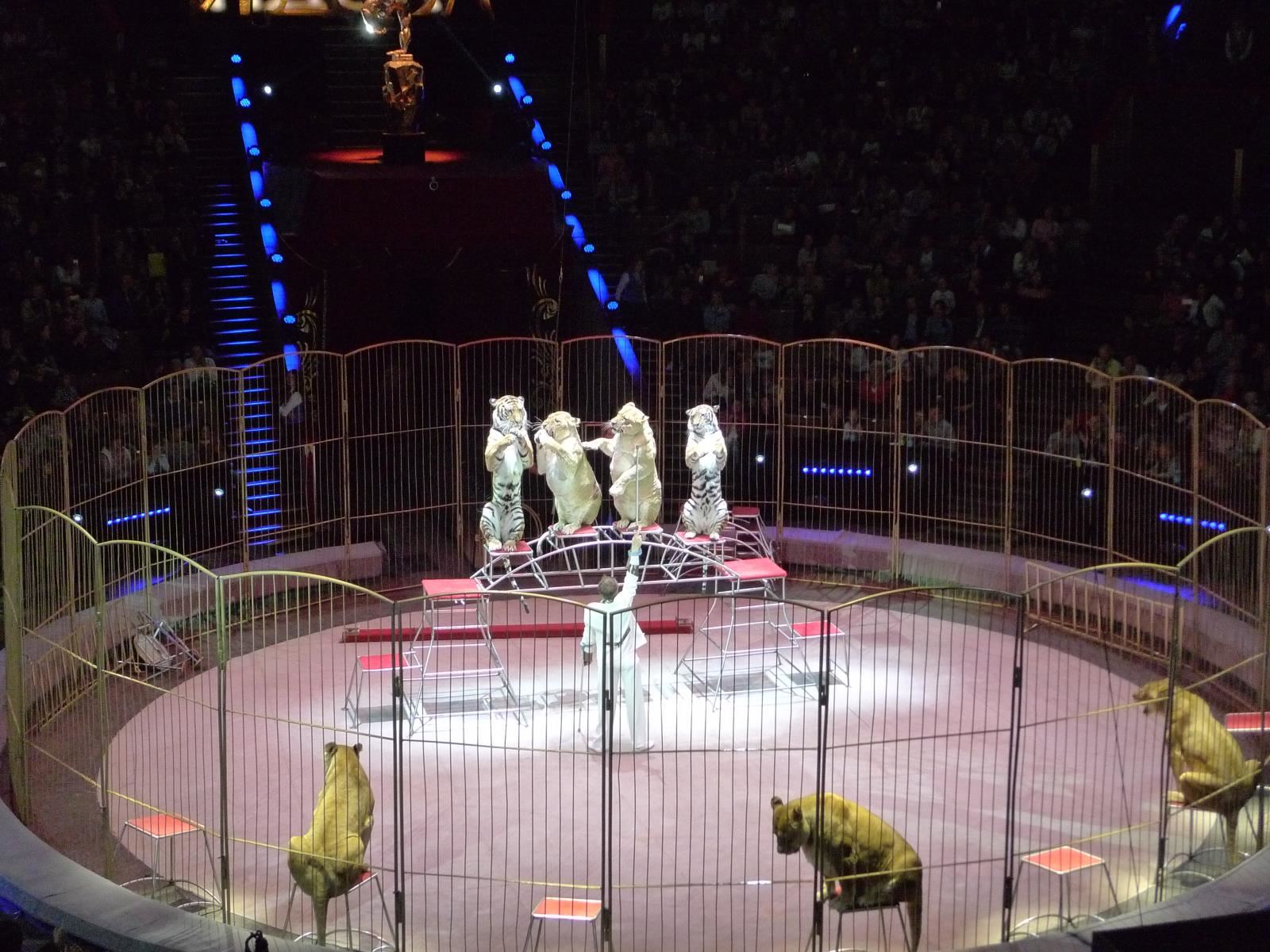 活動(dòng)獸欄置于圓形馬戲(猛獸)表演區(qū)外緣,當(dāng)馬戲(猛獸)表演時(shí)利用卷?yè)P(yáng)系統(tǒng)升起。