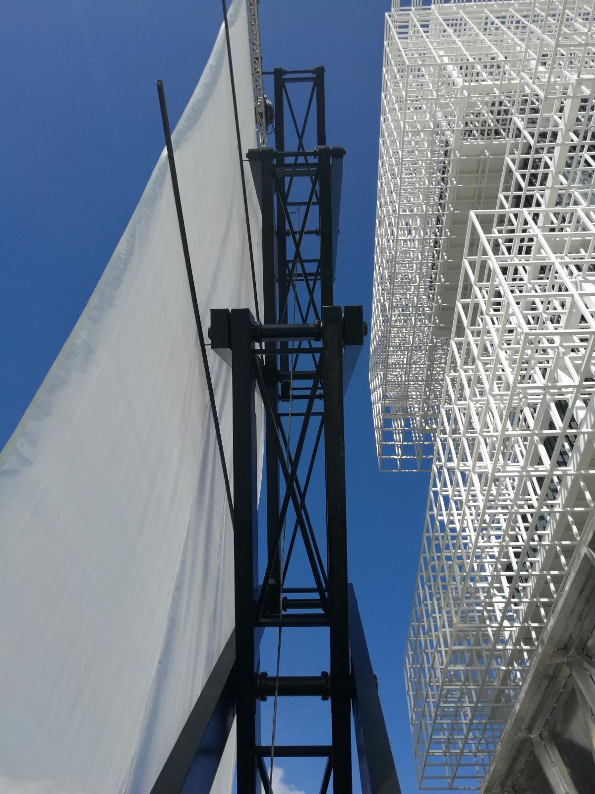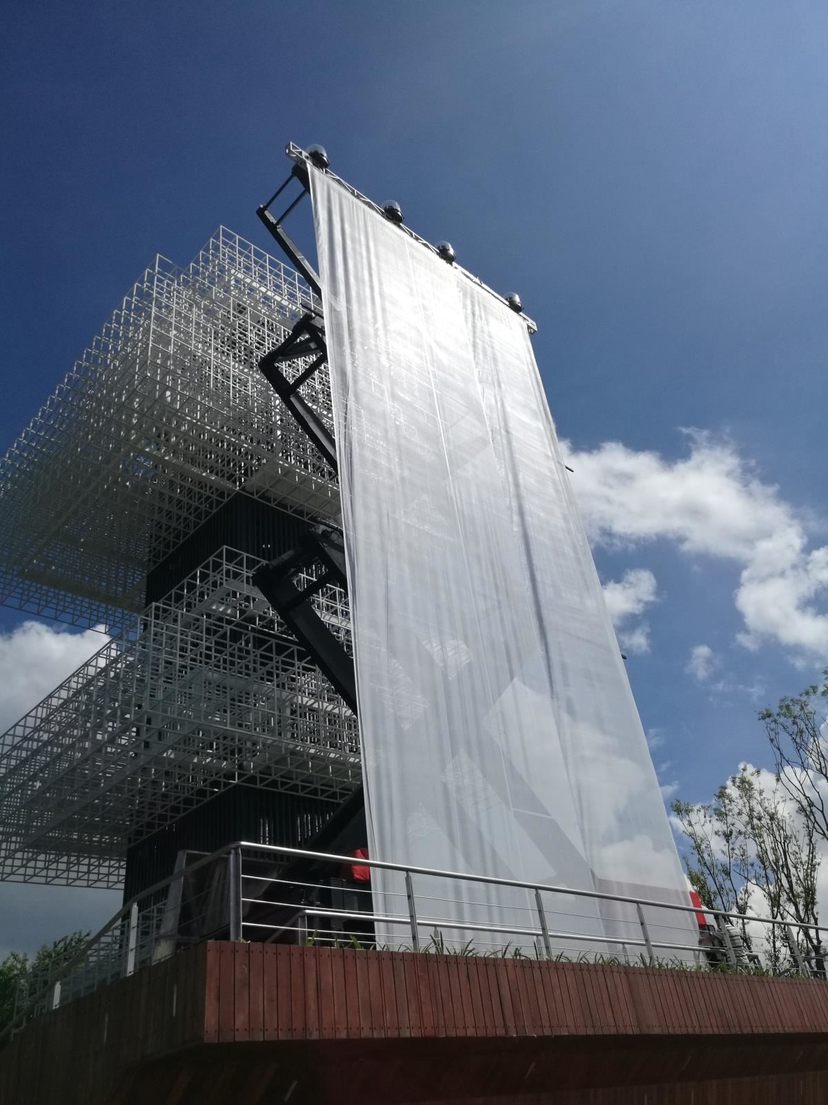 淺基坑大行程無導(dǎo)向大型戶外升降巨型投影框架系統(tǒng)